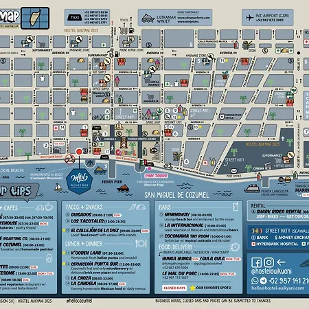 L'aéroport le plus proche est international de Cozumel, à 5 km de Casa Samay. Le centre-ville de Cozumel est à moins de 1 km. La Palapa di Pasta Roo Cozumel offert une cuisine italienne et se trouve à 450 mètres de la propriété.
